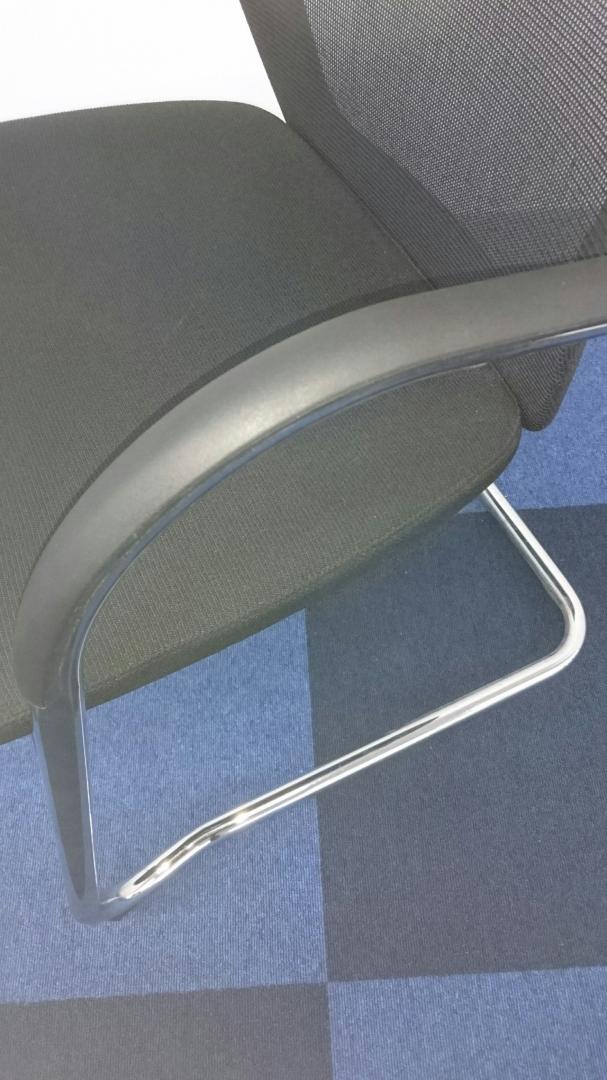 仕様:脚フレーム/スチールパイプクロームメッキ、背シェル/ポリアミド樹脂+メッシュ張り、座面/ポリプロピレン・布張りクッション、肘パッド/ポリプロピレン