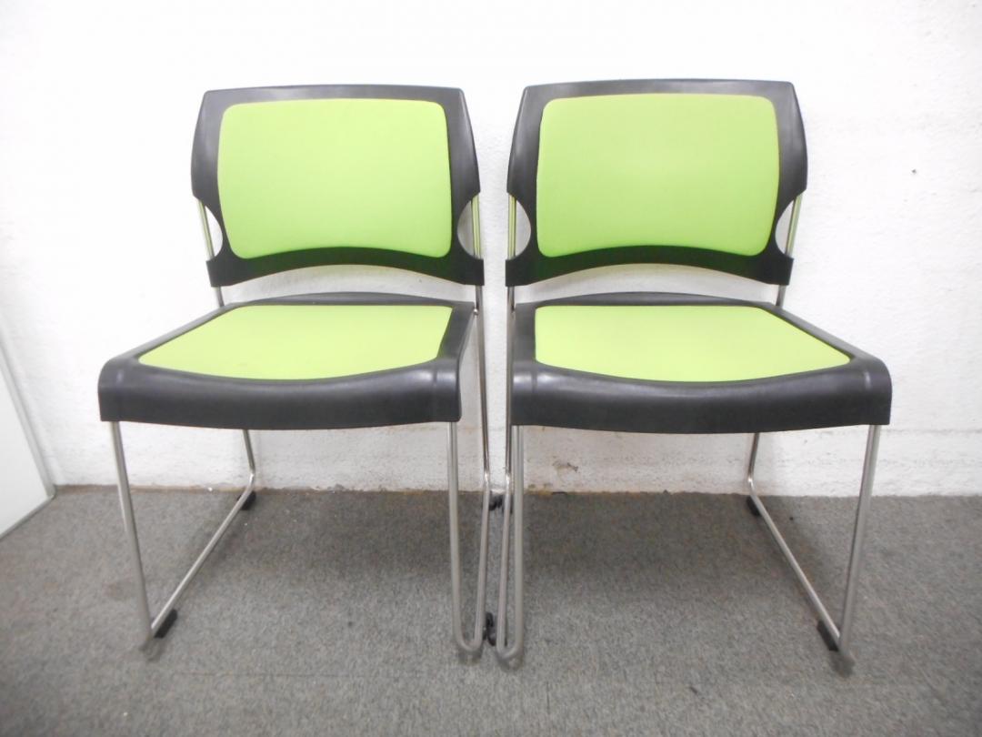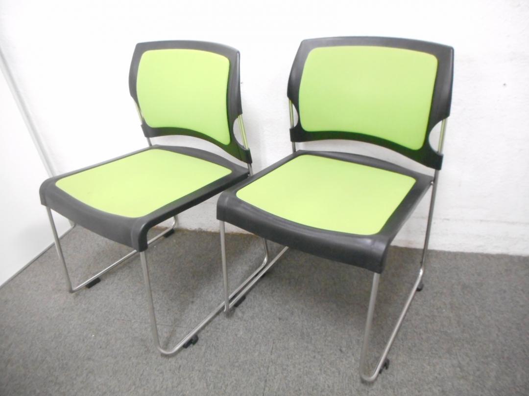 ★残り2脚の為 セット価格★お買い得★早いもの勝ち【軽くて丈夫なコクヨ製のスタッキングチェア】緑と黒のカラーリングが映える- 在庫数