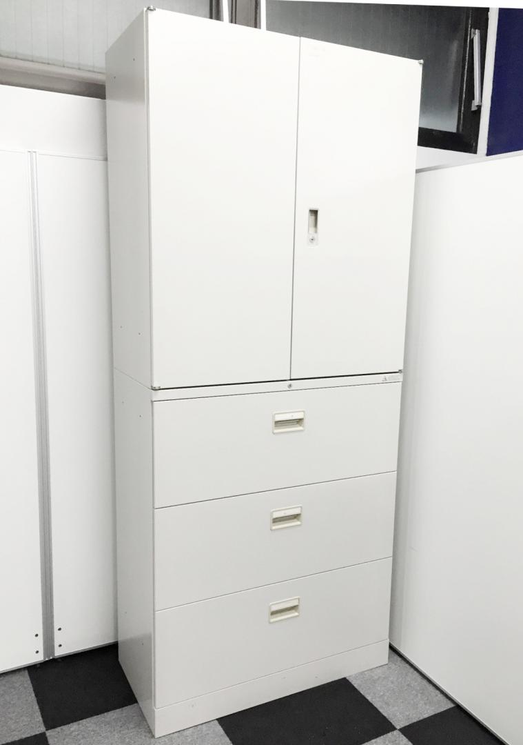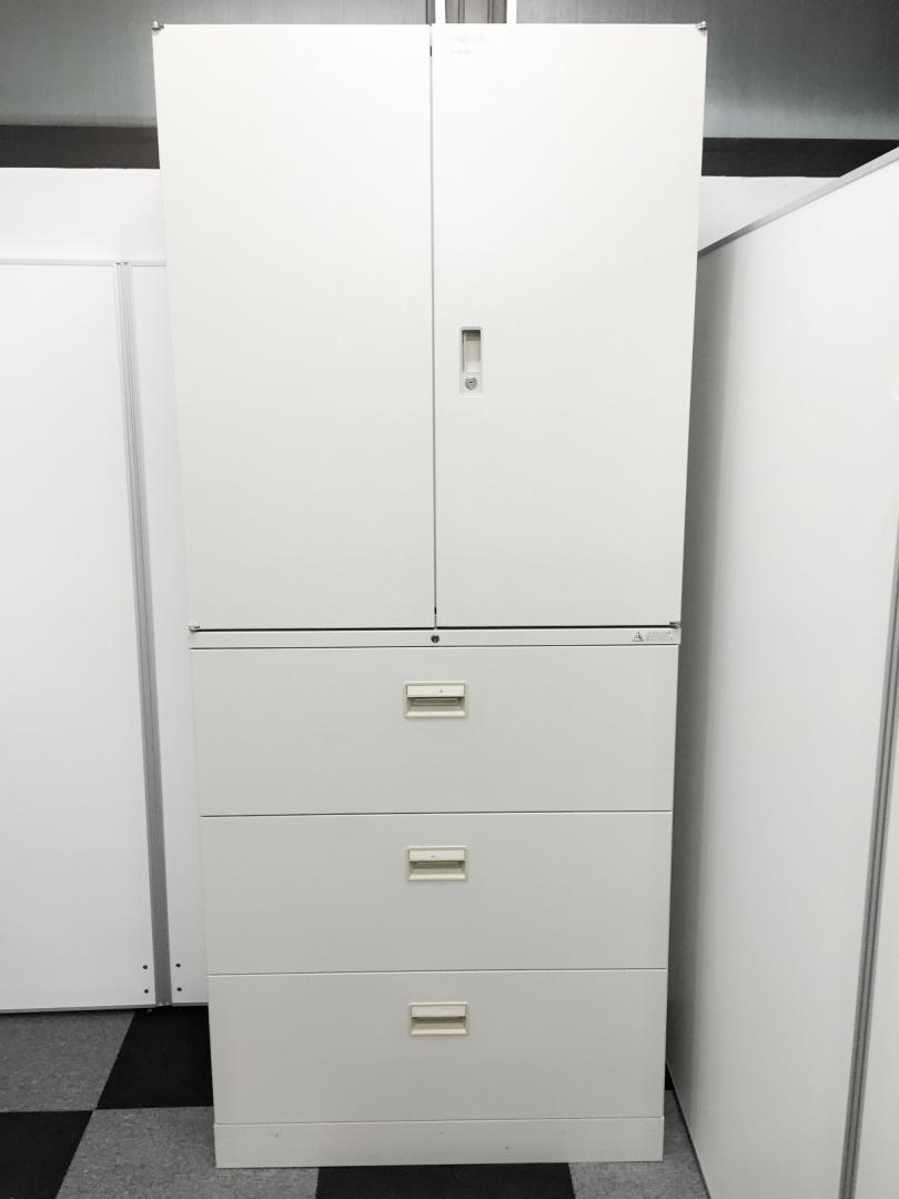 【状態良好】書類収納に一番人気の商品!引き出しタイプと観音開きの書庫セットで鍵もかかるおすすめ品!【両開き書庫セット】- 在庫数