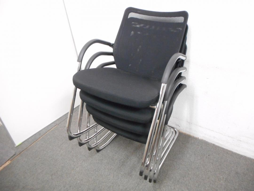 ★4脚セットの特別価格★ 【シンプルで美しい】大量入荷!!揃えるなら、今ですよっ☆早いもの勝ち。丈夫で、メッシュ&ブラックのコクヨ製の布張りクッション。スタッキングチェア 肘付き。多用途チェアー。- 在庫数