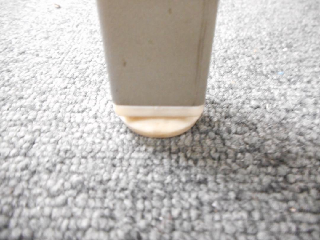 - 一部不具合あり天板歪み、アジャスター無し、キャスター使用不可ようなそのテーブルの本来の効用を果たすための機能以外の一部が使用不可な状態。(例、キャスターロッ ク機能使用不可、棚板無し等がある。)