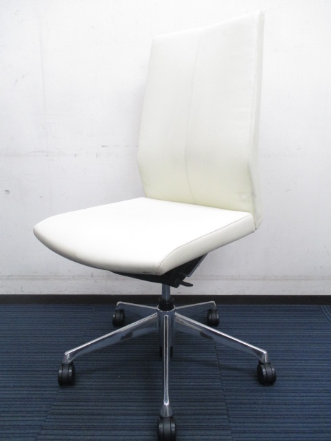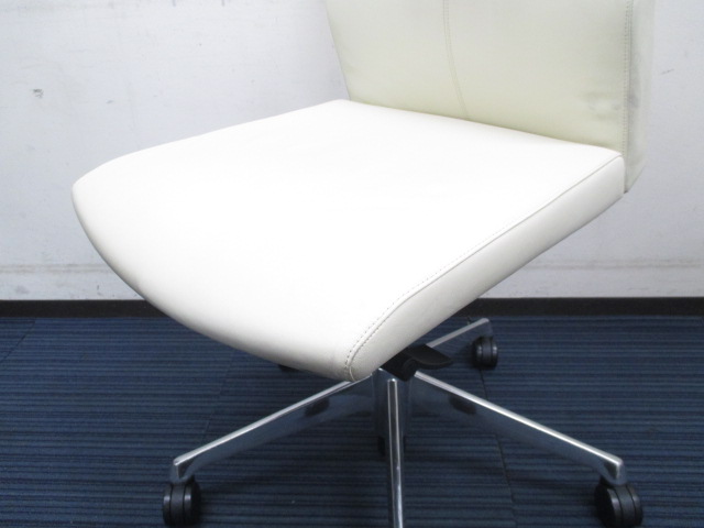 肘無しタイプで10000円切った!【本革高級チェア】新品価格30万以上!オカムラ製ベゼルダ(Bethelda)チェア入荷!■柔らかい色合い・ホワイトレザー仕様!【hi_class】【クリーニング済】【値下品】【中央区】【日本橋】【中古オフィス家具】【特価】- 日本橋店