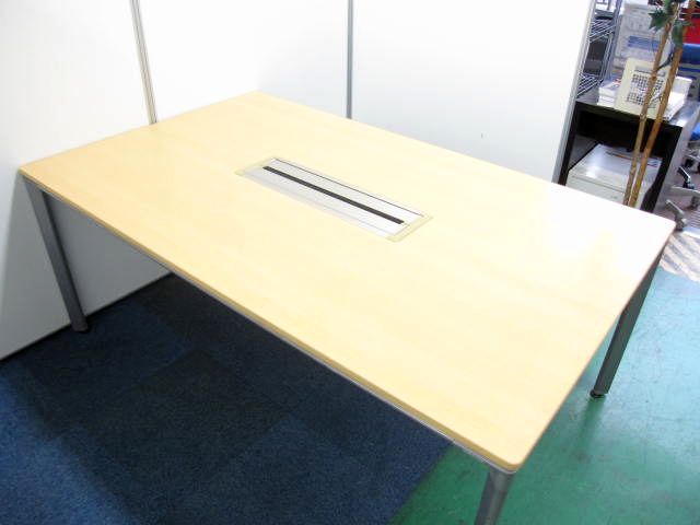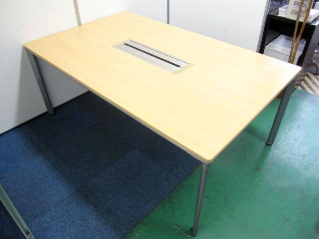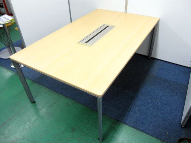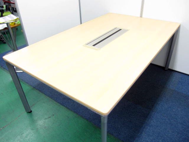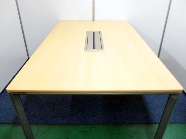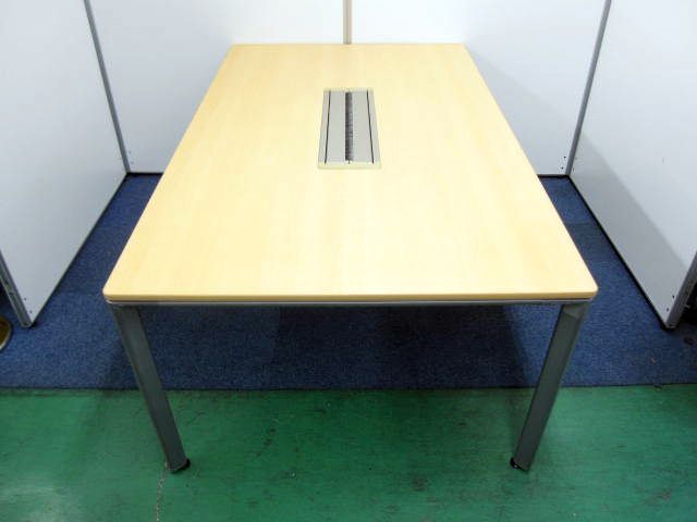 配線BOXもある ミーティングテーブル ナチュラル 奥行広々タイプ- 品川・三田店