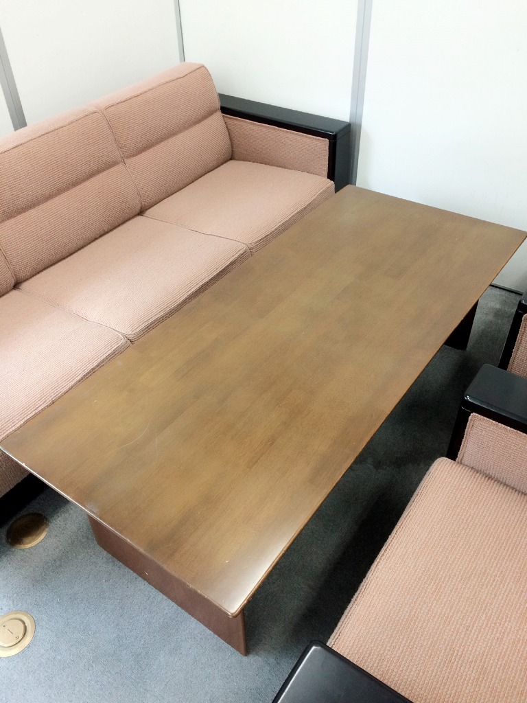- 若干ありソファの場合、破け、ホツレ、へたり、しわ等が一部ある。(例、背もたれ、肘かけ、座面等にある。)センターテーブルの場合、傷・凹みが一部ある。(例、天板、 脚にある。)