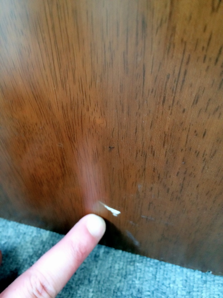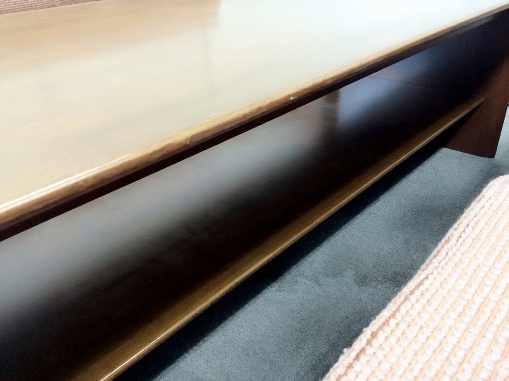 - あり黄ばみ・変色が広い範囲にうっすらある、または濃い黄ばみ・変色が一部ある。(例:三人用ソファ、二人用ソファ、一人用ソファの場合、背もたれ、肘かけ、座面等、 センターテーブルの場合、天板、脚にある。)