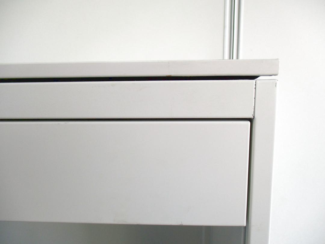 - 一部不具合あり天板歪み、引出開閉不可、アジャスター無し、施錠不可のようにそのカウンターの本来の効用を果たすための機能以外の一部が使用不可な状態。(例、引出が 開閉しづらい等がある。)