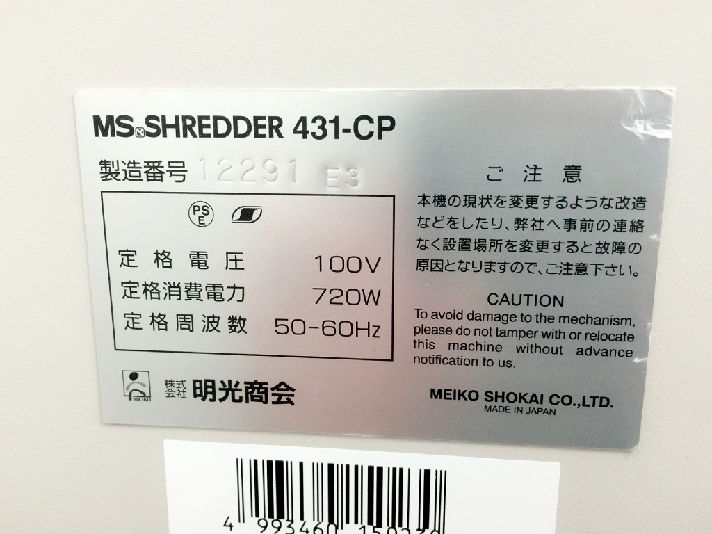 【中古】 MS-431CP 明光商会 シュレッダー 173965