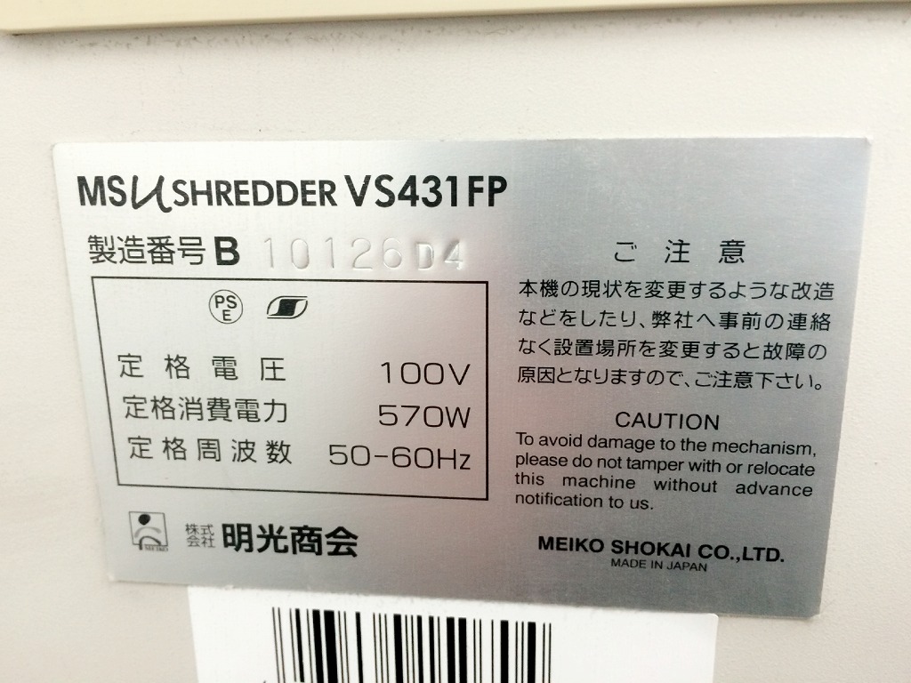 【中古】 MS-V431FP 明光商会 シュレッダー 173968