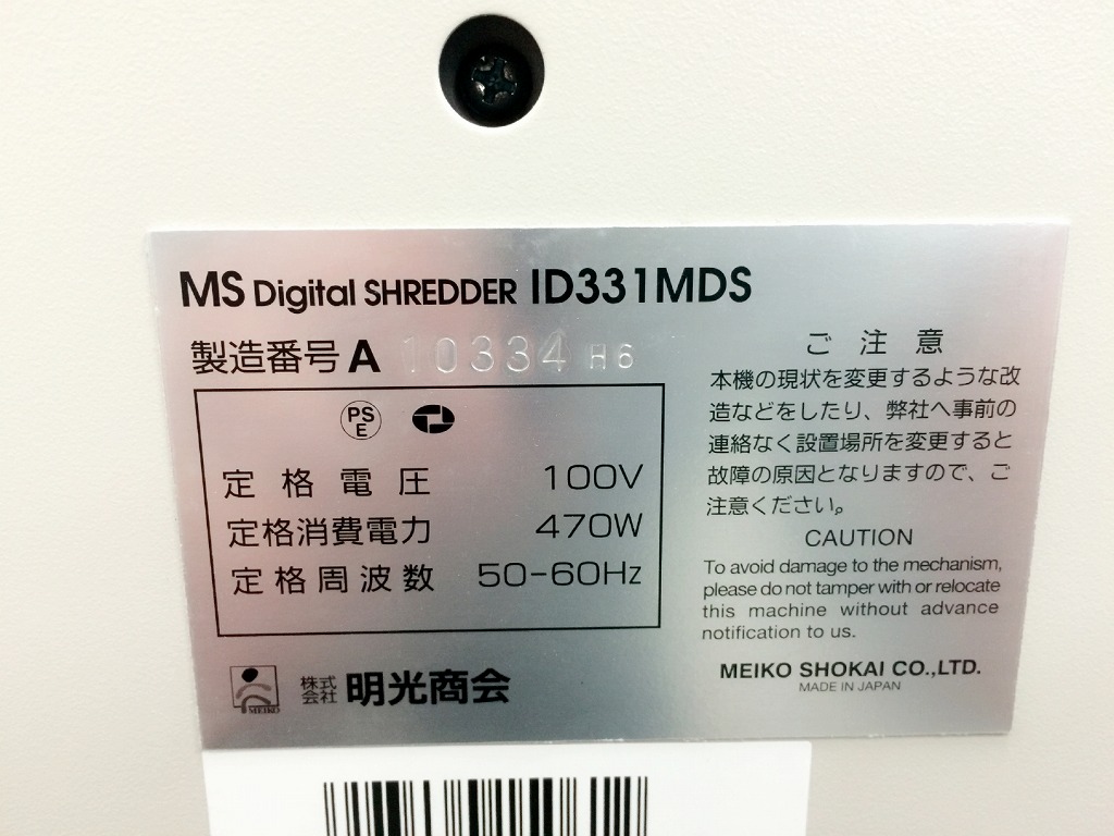 【中古】 MS-ID331MDS 明光商会 シュレッダー 173972
