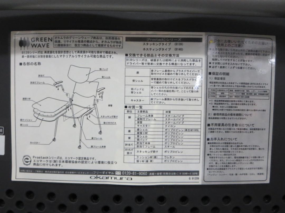 【中古】 プロスタック 8139ZZ オカムラ/okamura スタッキングチェア 174064