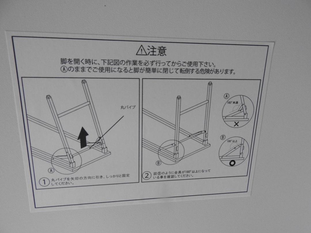 - 一部不具合あり天板歪み、アジャスター無し、キャスター使用不可ようなそのテーブルの本来の効用を果たすための機能以外の一部が使用不可な状態。(例、キャスターロッ ク機能使用不可、棚板無し等がある。)