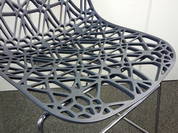 素材はナイロンにガラス繊維をミックスした硬質な素材で丈夫さもありながら、体のラインに沿う立体的な形状で座り心地も実現しています。