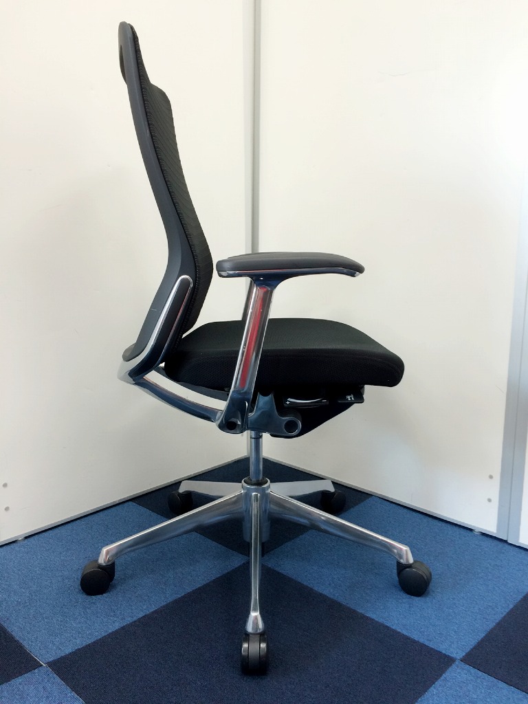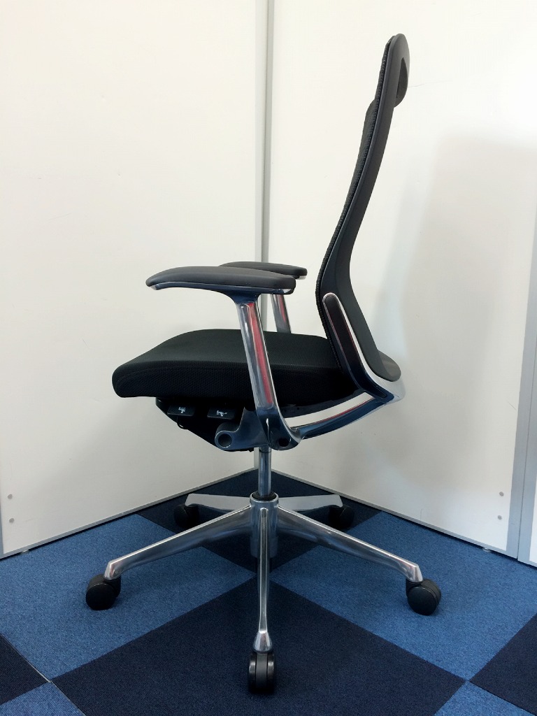 【先行商品!】【機能性抜群の人気チェア!自然な姿勢をサポートするアンクルチルトリクライニング搭載!】■オカムラ(okamura)製 コーラルチェア(Choral) 肘付 エクストラハイバックチェア ファブリックタイプ ■可動肘・ヘッドレスト付 ■ブラック