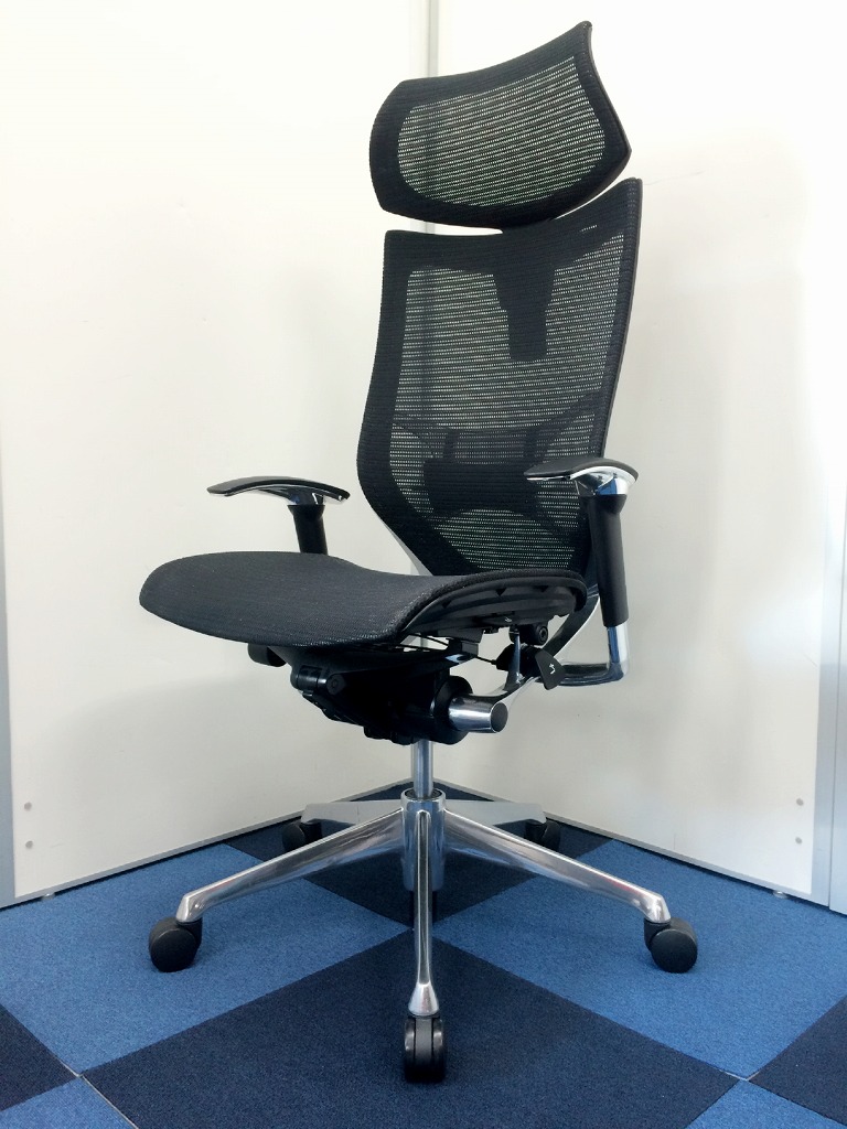 【長時間の着座でも疲れにくい!ベストなポジションが得られる先進設計!】■オカムラ バロンチェア 肘付 ブラック ハイバック シルバーフレーム ■良い椅子は腰を守る投資です!【Okamura Baron】