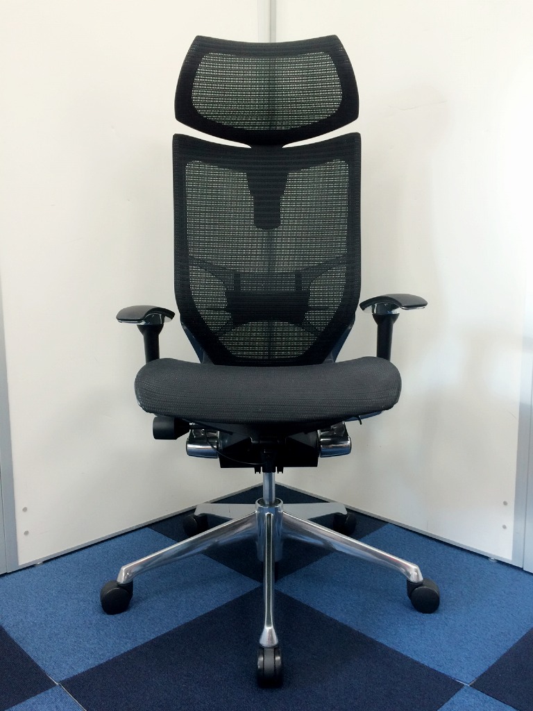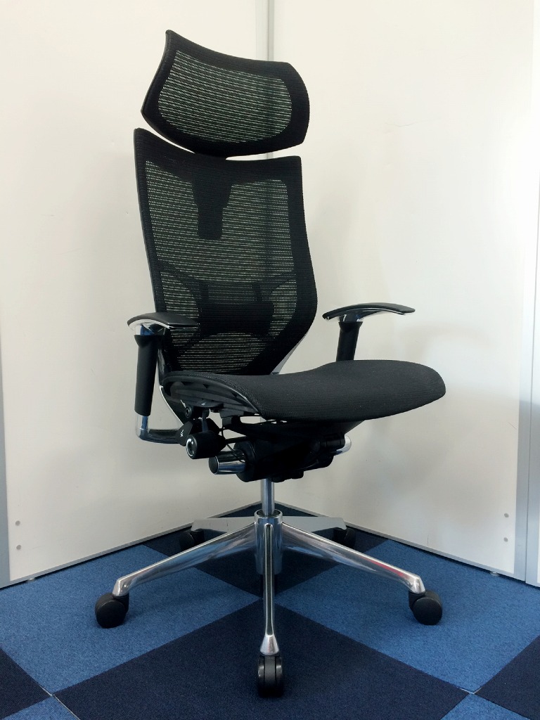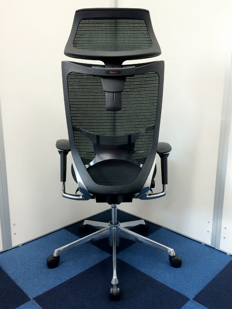 【オフィスの執務室、会議室におすすめ!】■オカムラ(okamura)製 バロン(Baron)チェア 肘付き ハイバック ■背・座面メッシュ ■可動肘 ■ヘッドレスト付き ■ブラック【硬めの座面が大人気!国産メッシュチェアの代表格!】