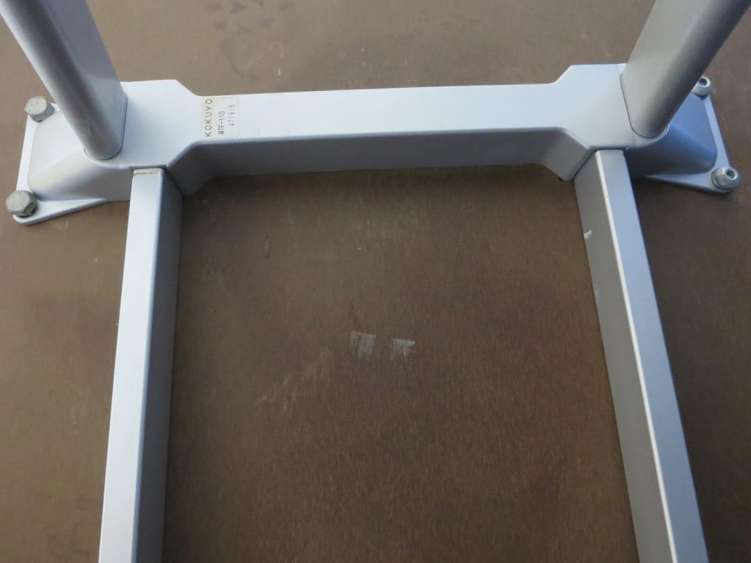 - 一部不具合あり天板歪み、アジャスター無し、キャスター使用不可ようなそのテーブルの本来の効用を果たすための機能以外の一部が使用不可な状態。(例、キャスターロッ ク機能使用不可、棚板無し等がある。)