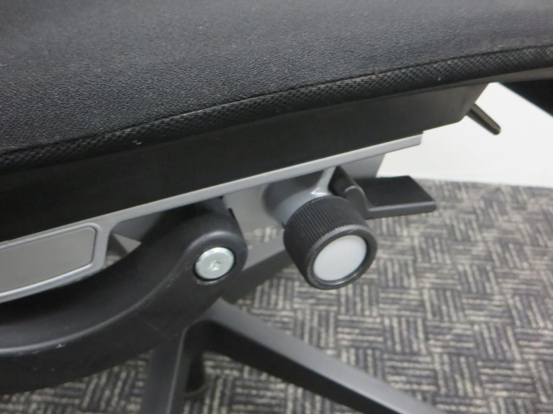 快適な座り心地に不可欠な調節機能である、上下昇降、座面の奥行き調整、リクライニングなどを備えており、操作もわかりやすく好評です。 特に、座面の奥行きは、座面下の左右に通った細いバーで調整でき、座ったままで軽やかに滑るように調整が可能です。 価格面では、新品では高めですが、中古は流通も多く、定価の3割前後の価格で高級チェアの座り心地を手に入れることができます!