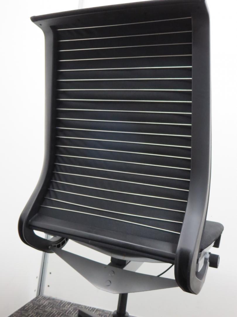 【長時間座る人のための椅子!ワイヤーが体にフィットするアメリカ発の大人気商品!長時間の着座ストレスを軽減!】 ■スチールケース(Steelcase)製 シンク(think)チェア 肘無し ハイバック ■メッシュバック(3Dニット) ■ブラック 【弊社使用欄:A01046268】
