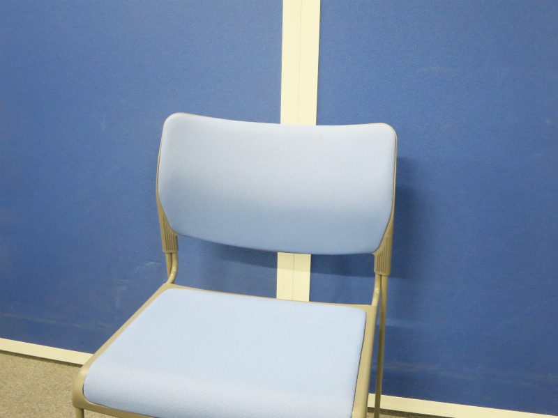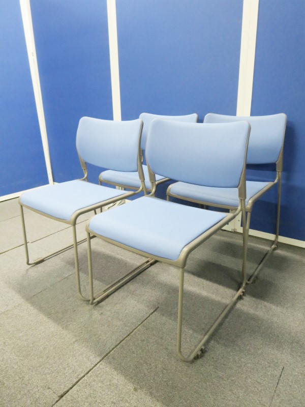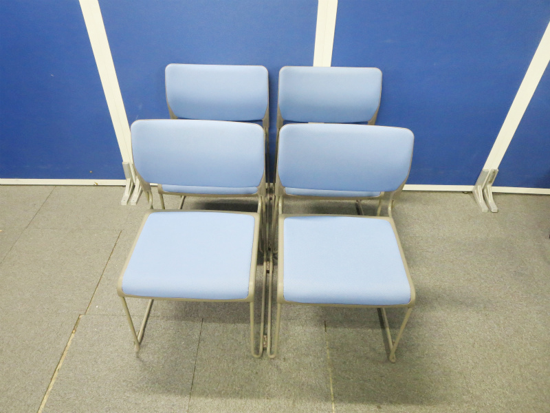 【売れ筋のシンプルデザイン!】■オカムラ製 スタッキングチェア(ブルー)- 川崎店