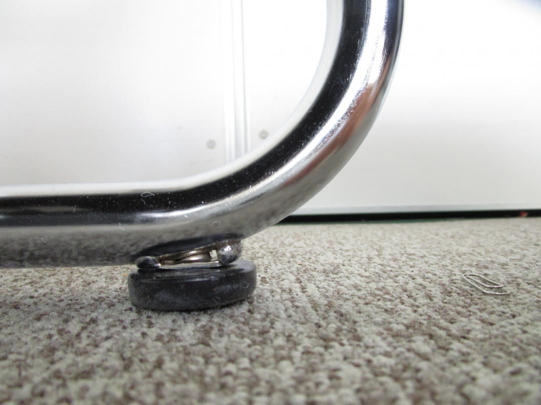 - かなり強い濃い黄ばみ・変色が商品全体にある。(例、座面・背もたれ、脚部等にある。)