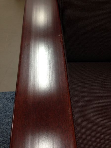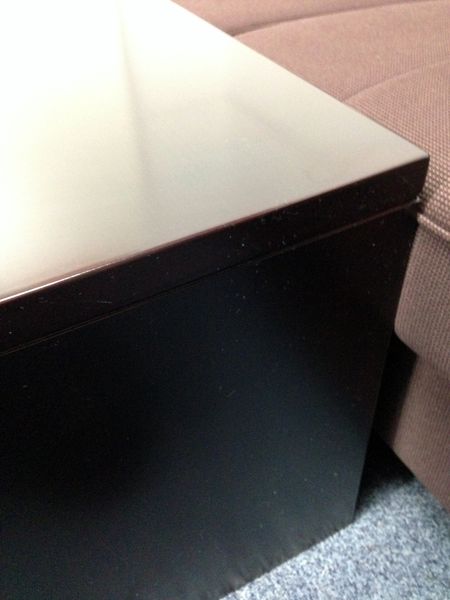 - あり黄ばみ・変色が広い範囲にうっすらある、または濃い黄ばみ・変色が一部ある。(例:三人用ソファ、二人用ソファ、一人用ソファの場合、背もたれ、肘かけ、座面等、 センターテーブルの場合、天板、脚にある。)