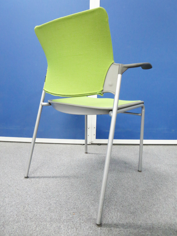 ■オカムラ スタッキングチェア 肘付 ライトグリーン forma(フォルマ)シリーズ- 川崎店