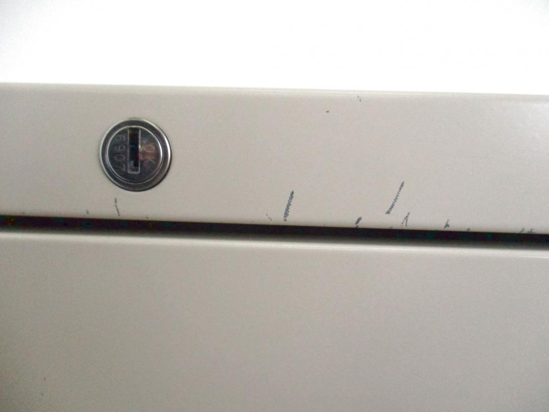 - 多数不具合あり引出の開閉不可、施錠不可、棚板無しといったその書庫の本来の効用を果たすための機能以外の多数が使用不可(例、扉、引出の開閉がしづらいなどがある。 )