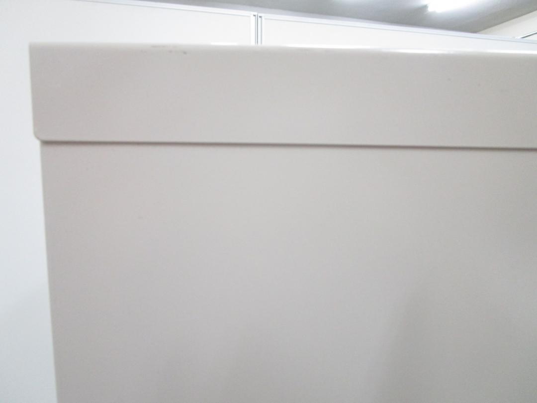 - あり黄ばみ・変色が広い範囲にうっすらある、、広い範囲にある。(例、天板、正面、背部、サイド部分にある。)