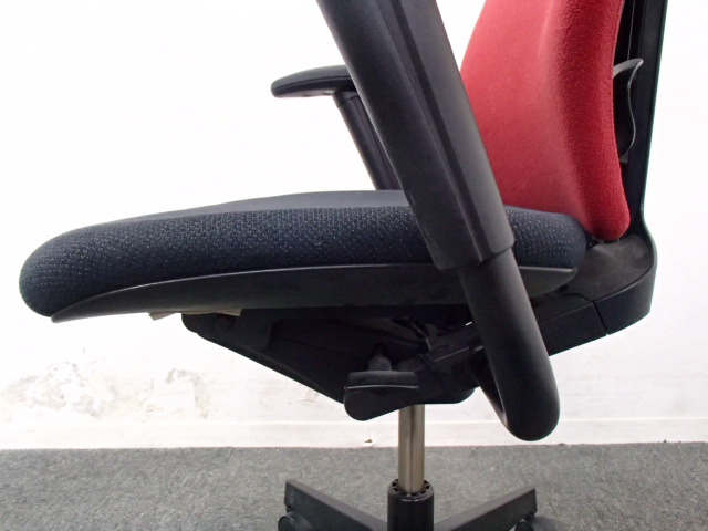 例えば、座面は、イトーキ独自の"ベンディングシート"という機構により、クッション、インターシェル、空洞という三層構造になっています。 この真ん中に挟まっているインナーシェルが、着座時の姿勢に合わせて体重を分散してくれるので、どんな姿勢でも体になじみ、疲労を軽減してくれます。 さらに、座面は前後に4センチほど奥行きを調整でき、前傾姿勢で座りたい、深く腰掛けたい、膝裏を圧迫されたくないなど、個人の好みに合った快適さにカスタマイズが可能となっています。