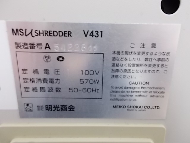 【中古】 MS-V431 明光商会 シュレッダー 174585
