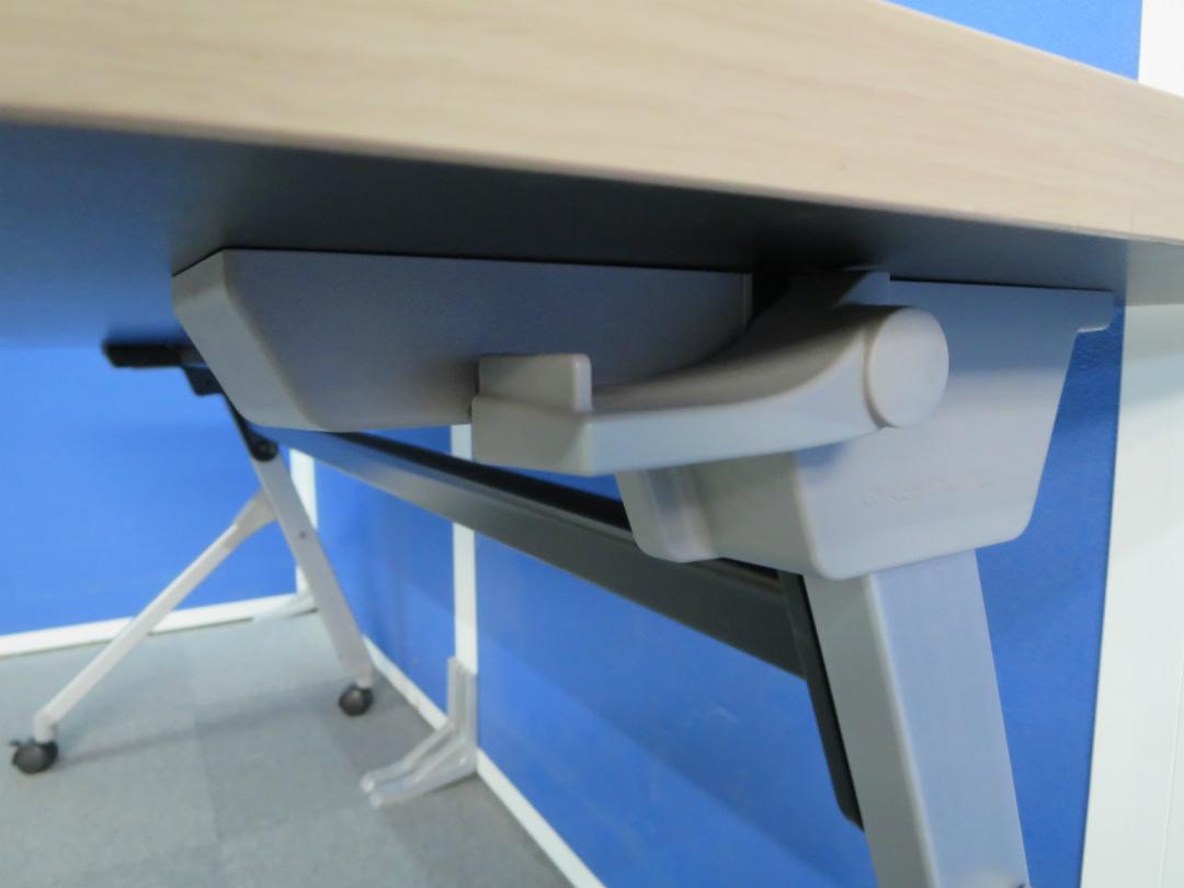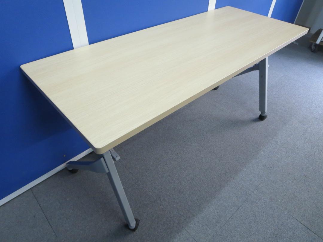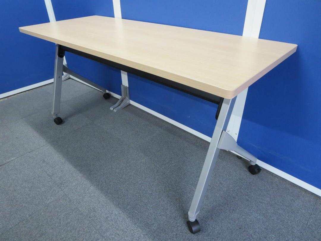 【W1500の折り畳みテーブルが入荷!】◆オカムラ/フラプター ナチュラル 木目 サイドスタックテーブル 収納 中古 博多 天神 九州最大級 オフィスバスターズ