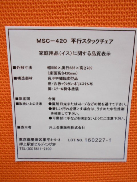 【平行スタックチェア】井上金庫/MSC-420- なんば日本橋店
