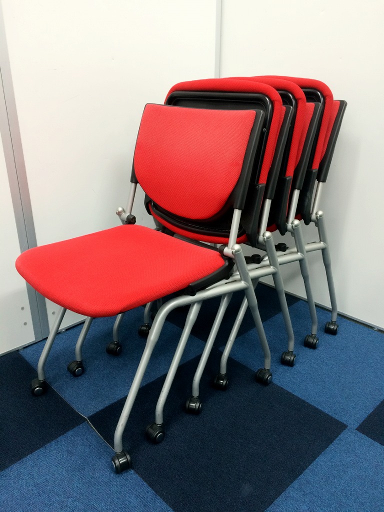 【会議用チェア!ネスティング・キャスター付き】■オカムラ製 ■プロスタック ■折りたためるので収納もらくらくできます- 在庫数