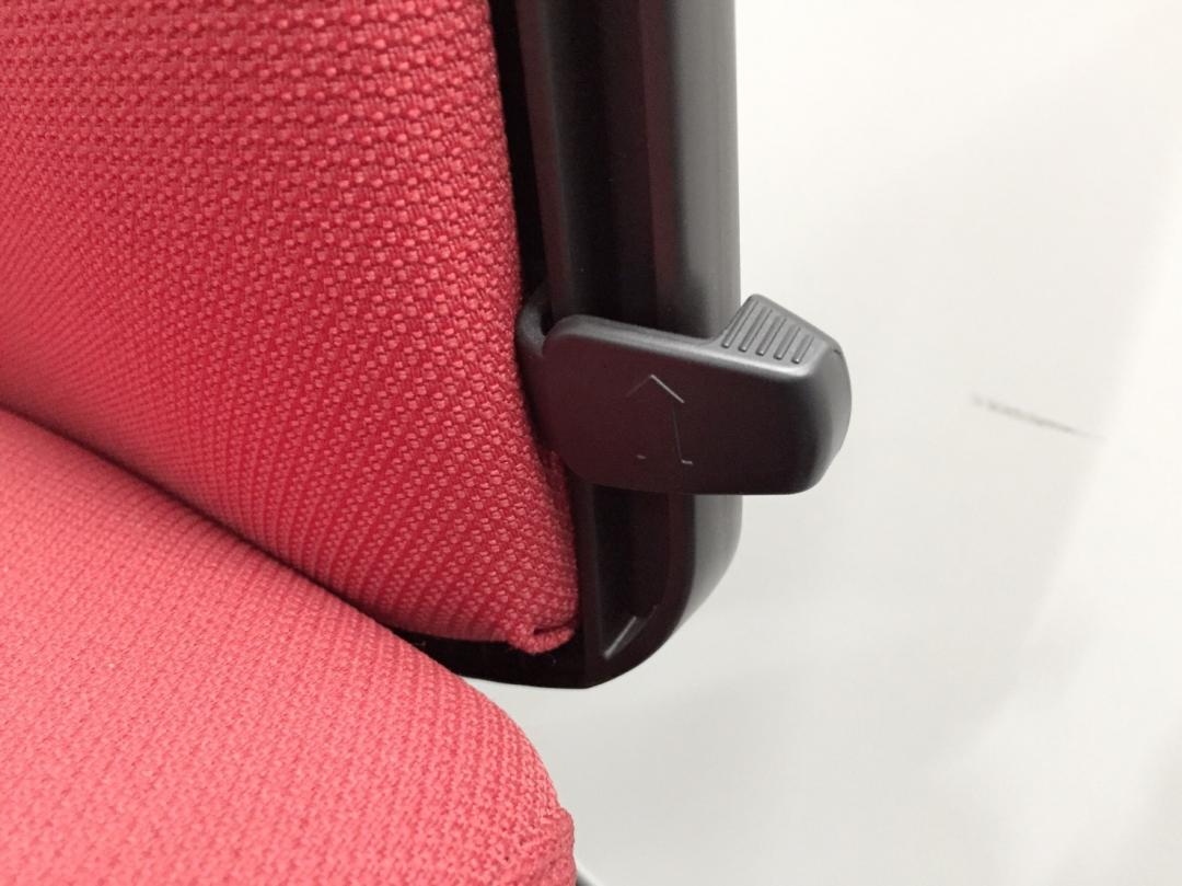 しかも、背もたれ両側のレバーを上下に動かすことによって、ランバーサポートの支点を上下に60mm動かすことができるので、体格に合わせて調整できます。