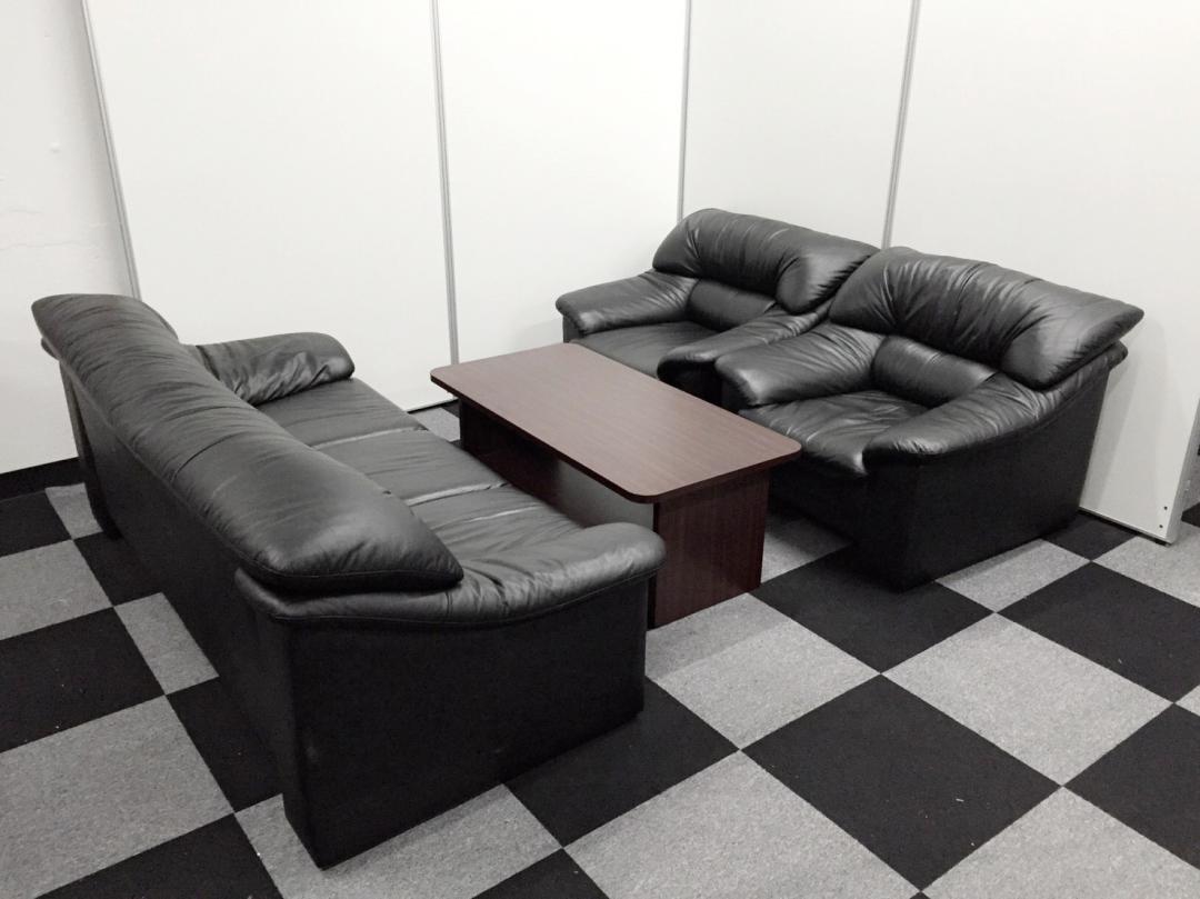 【状態良好】4名様から5名様の応接セット入荷!3人用ソファーと1人用ソファー2つの人気セット!【革張り】- 在庫数