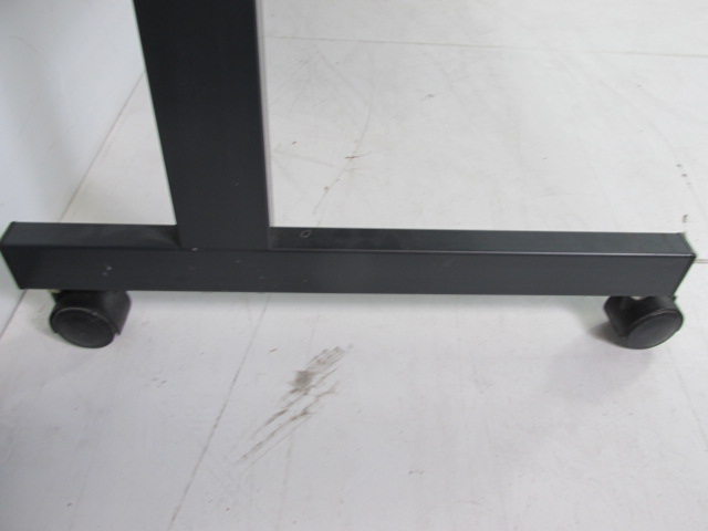 - 一部不具合あり天板歪み、アジャスター無し、キャスター使用不可ようなそのテーブルの本来の効用を果たすための機能以外の一部が使用不可な状態。(例、キャスターロッ ク機能使用不可、棚板無し等がある。)