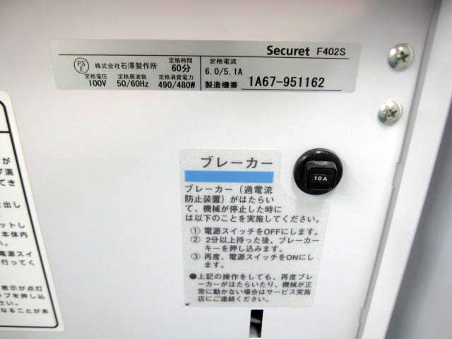 【中古】 セキュレット 石澤製作所 シュレッダー 174833