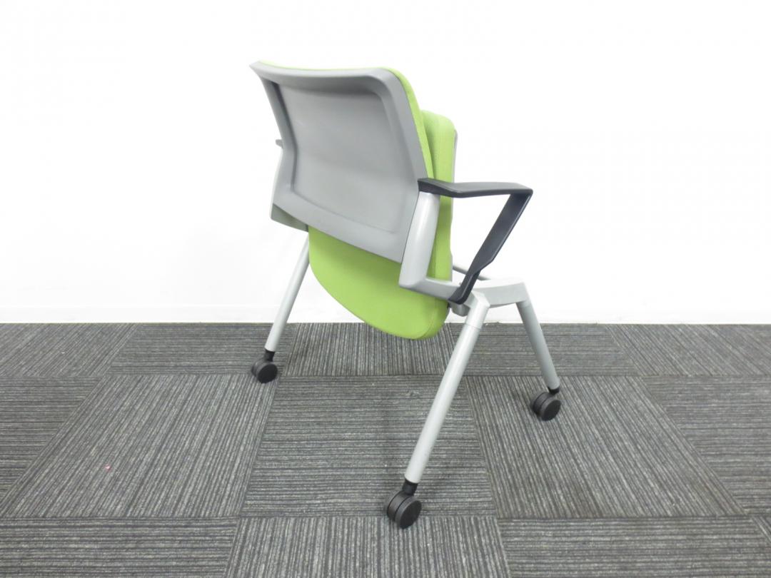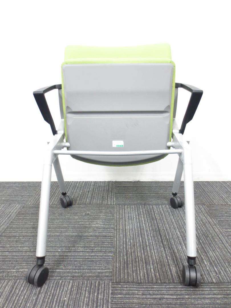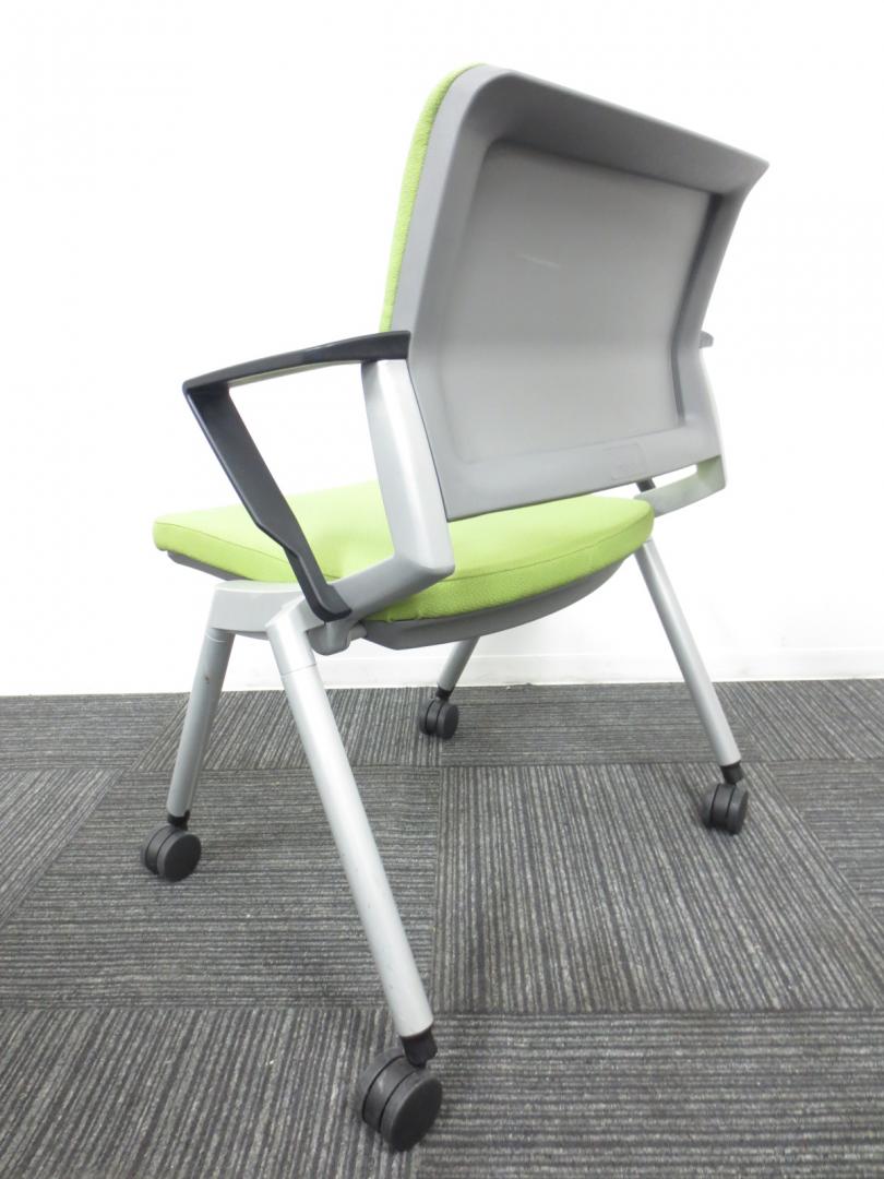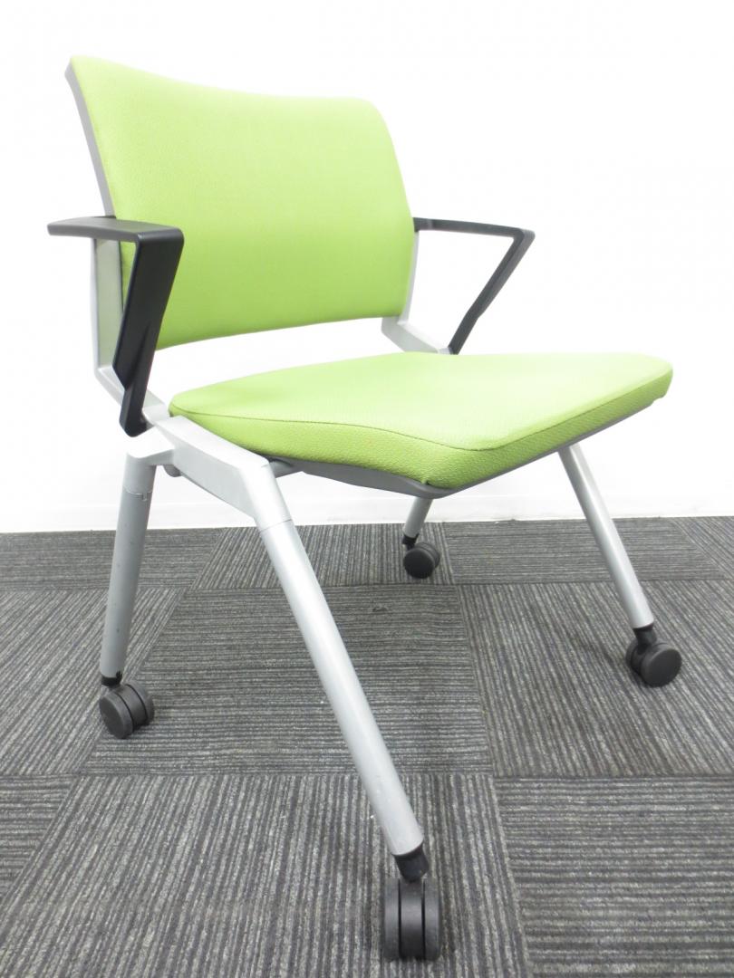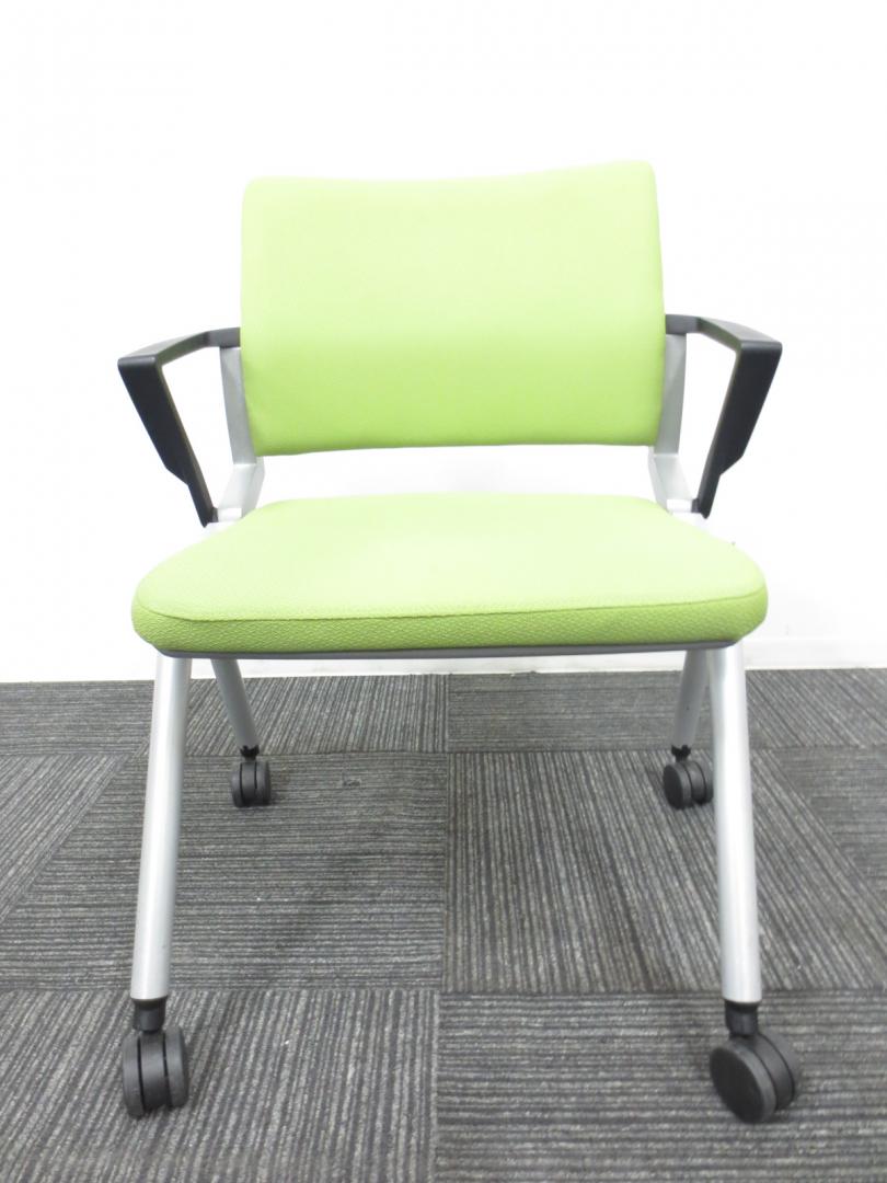 【爽やかで明るいライムグリーン】ネスティングチェア/会議用チェア|キャスター付【収納に便利!】【専門業者によりクリーニング済み】- 春日部・越谷店