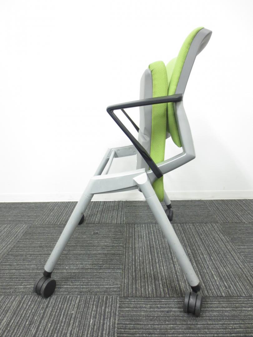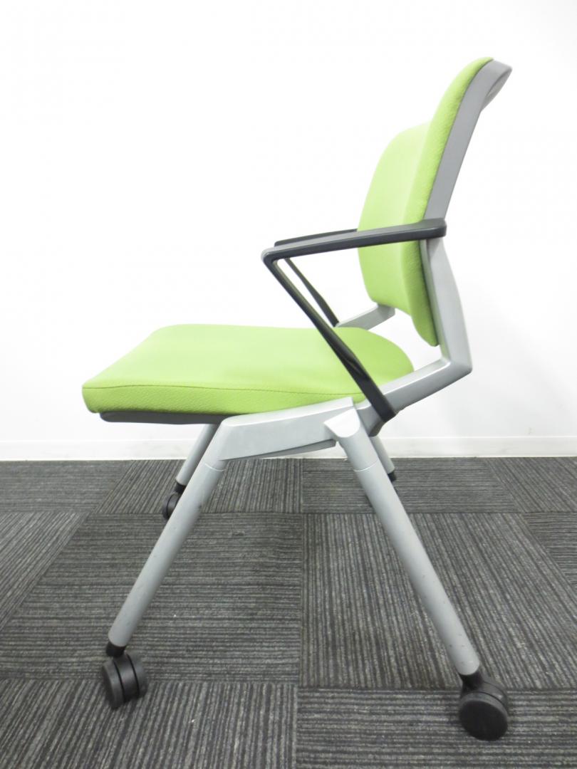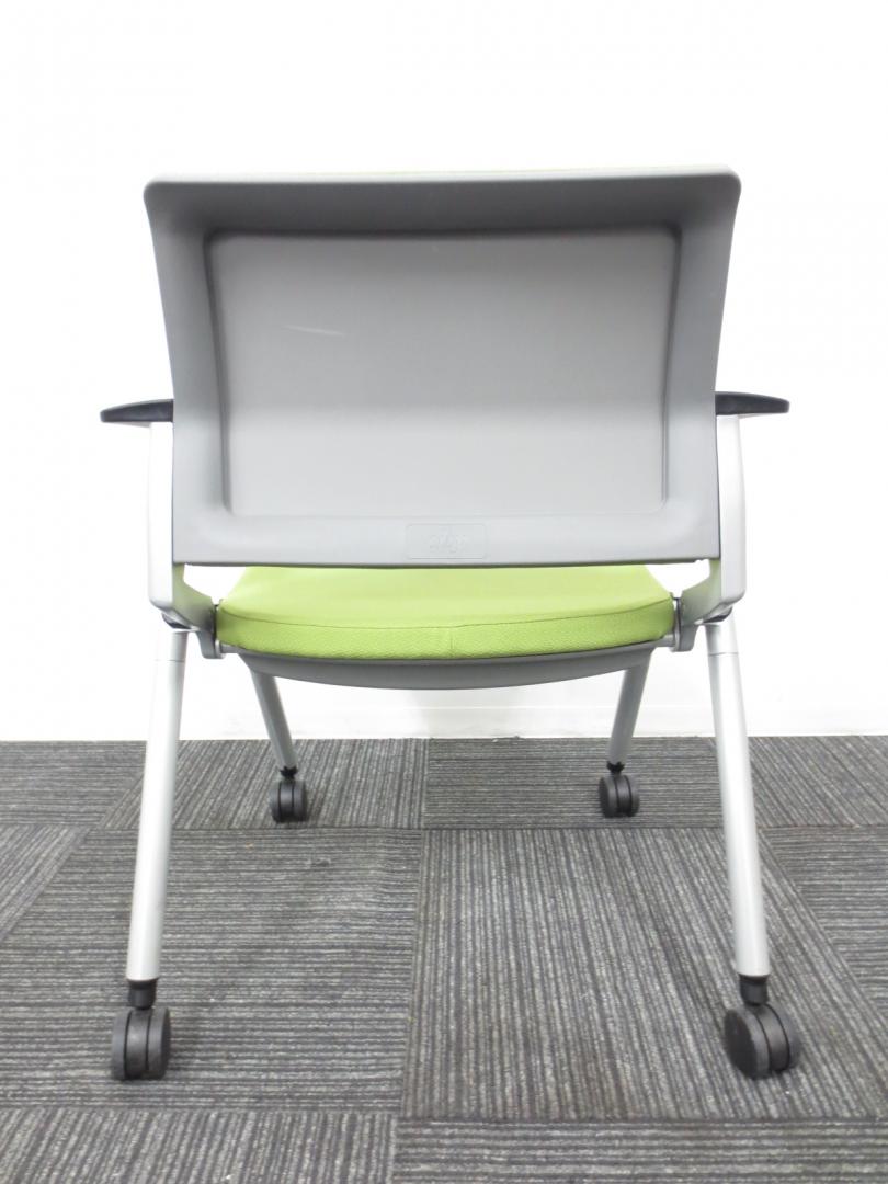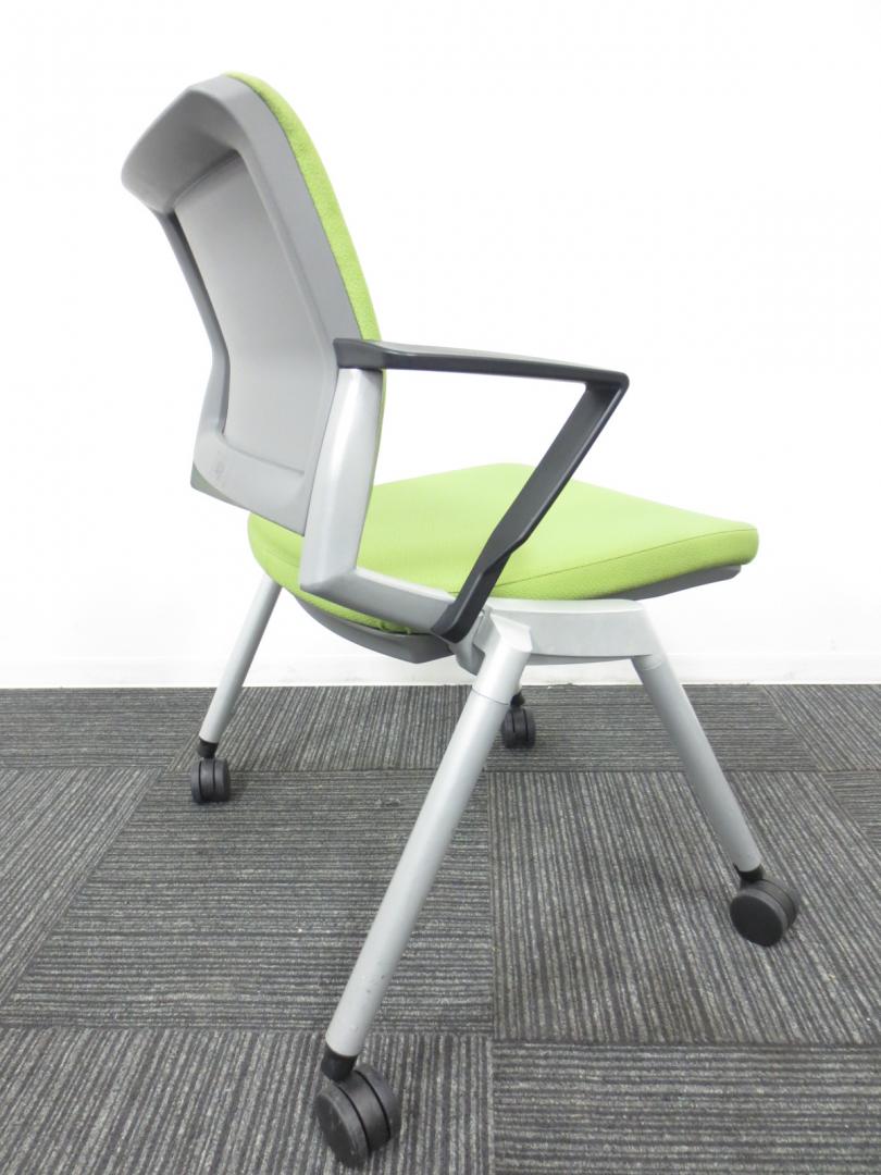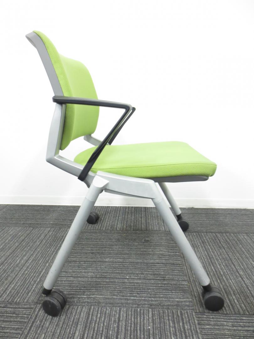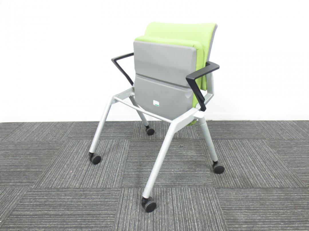 【爽やかで明るいライムグリーン】ネスティングチェア/会議用チェア|キャスター付【収納に便利!】【専門業者によりクリーニング済み】- 春日部・越谷店