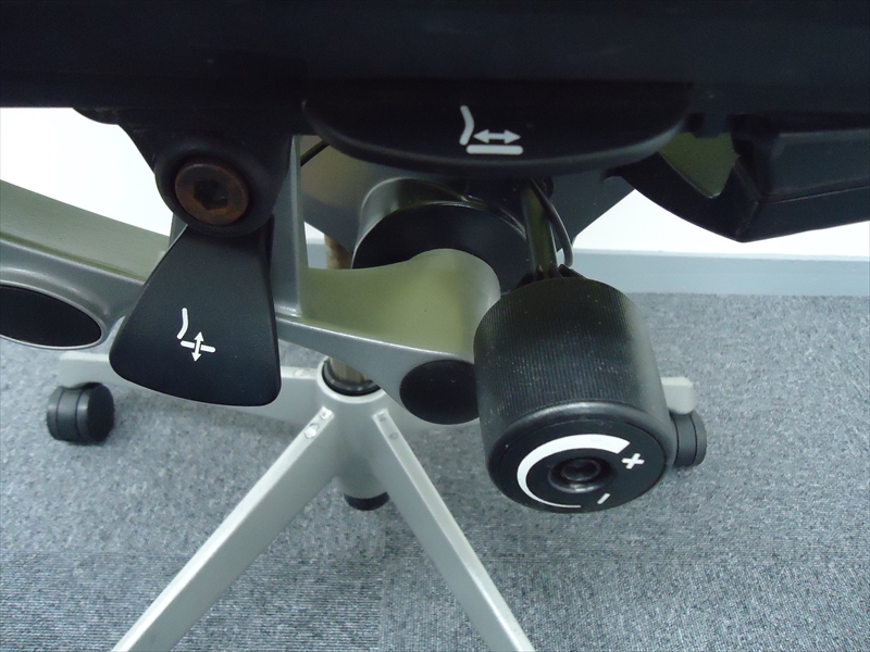 気に入っているのはリクライニング調整の自由さです。同じオカムラ社製の上位モデルや下位モデルも、角度が5段階程度の固定位置だったり、リクライニング強度も4段階だったりしますが、バロンチェアはどちらも無段階。つまり完全に好きな位置、好きな強度に調整することができます。