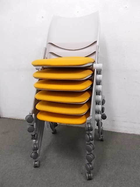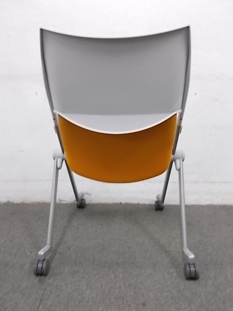 ■横にも縦に重ねられる■便利なスタッキングチェア■明るいオレンジで■ネスティングチェア■スタッキング■ミーティングチェア- 在庫数