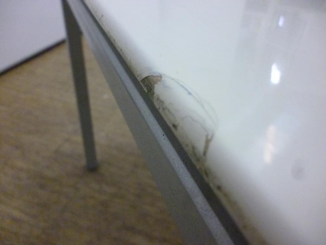 - 壊れている天板歪み、アジャスター無し、キャスター使用不可のようにそのテーブルの本来の効用を果たすための機能に不具合がある。