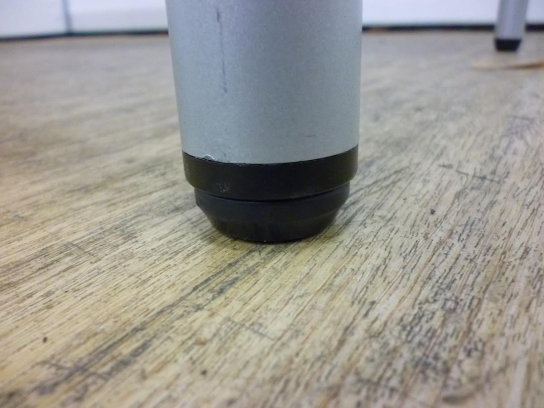 - 一部不具合あり天板歪み、アジャスター無し、キャスター使用不可ようなそのテーブルの本来の効用を果たすための機能以外の一部が使用不可な状態。(例、キャスターロッ ク機能使用不可、棚板無し等がある。)