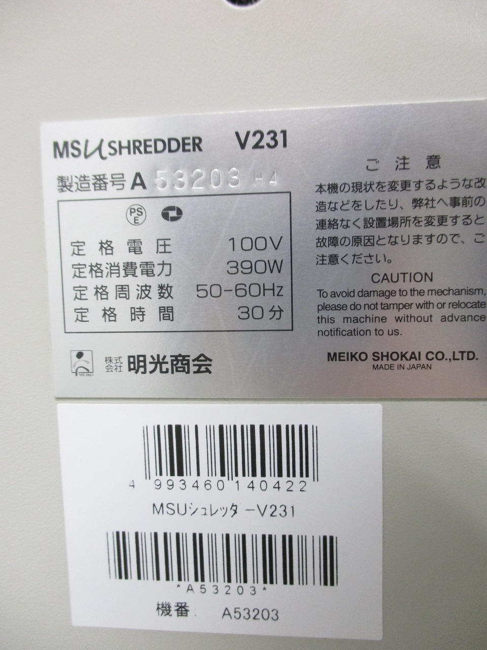 【中古】 MS-V231 明光商会 シュレッダー 175012