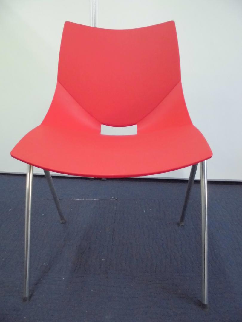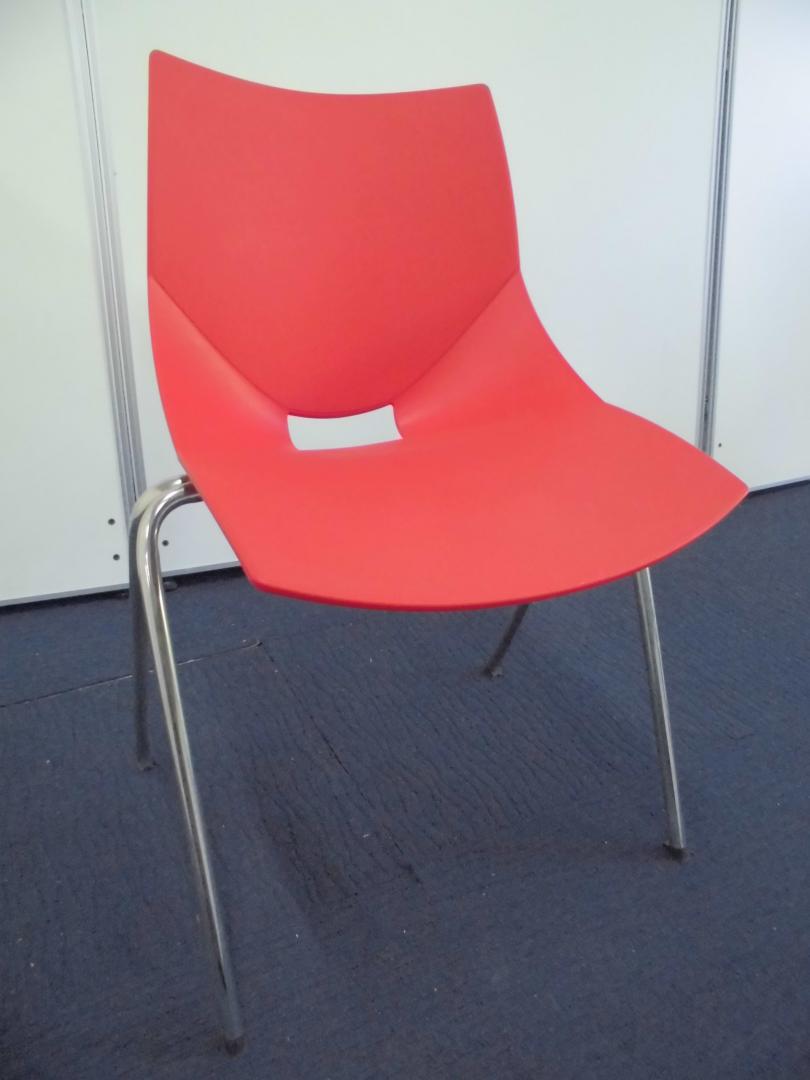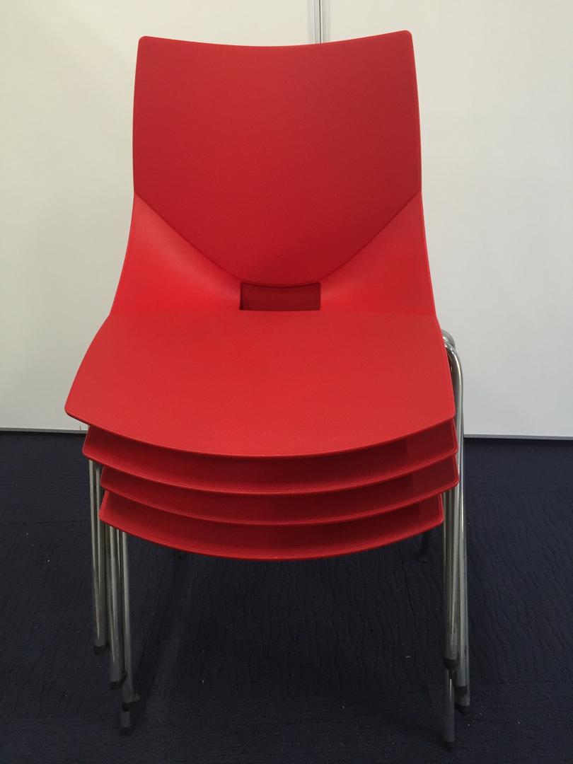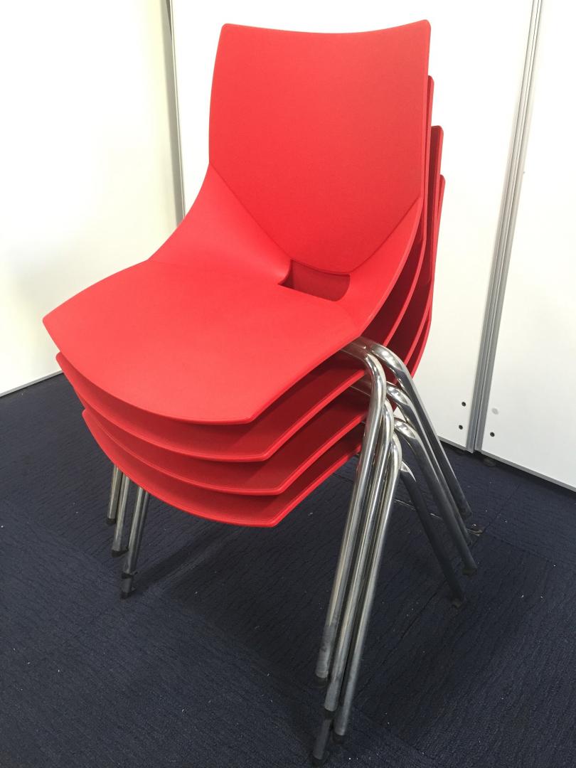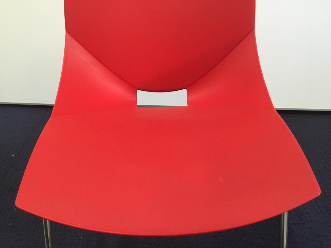【デザイン性がイイネ!】スタッキングチェア(情熱の赤)|樹脂素材なので拭き掃除ができて便利!- 立川・八王子店