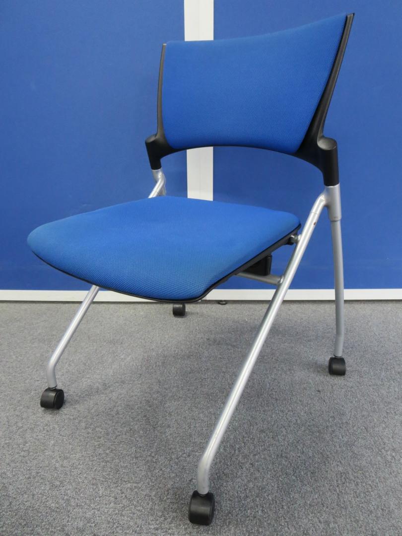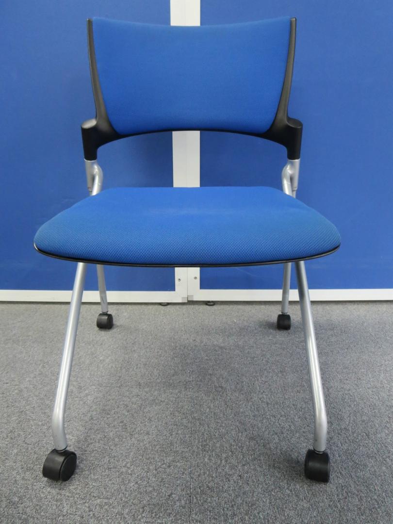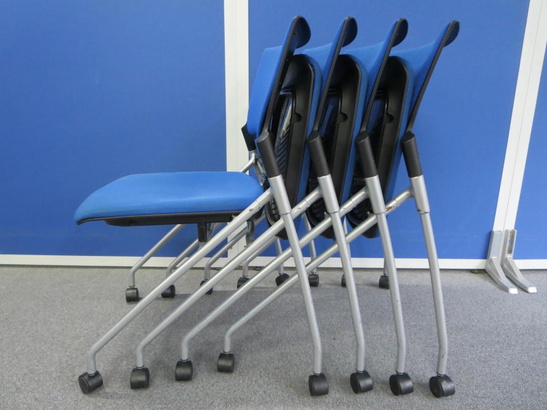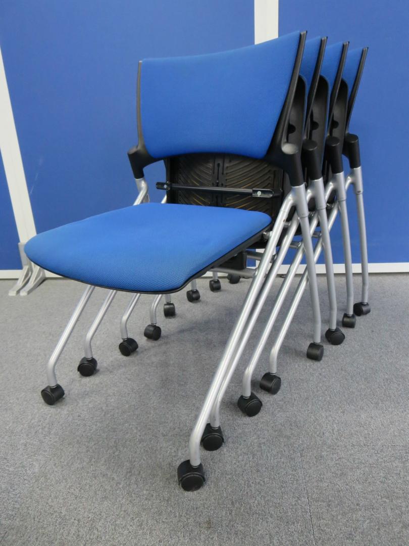 【お得な4脚セット!】■マノスチェア【ブルー】■【長時間使用でも疲労感の少ない、やわらかな座り心地】イトーキ製・ネスティングチェア- 川崎店