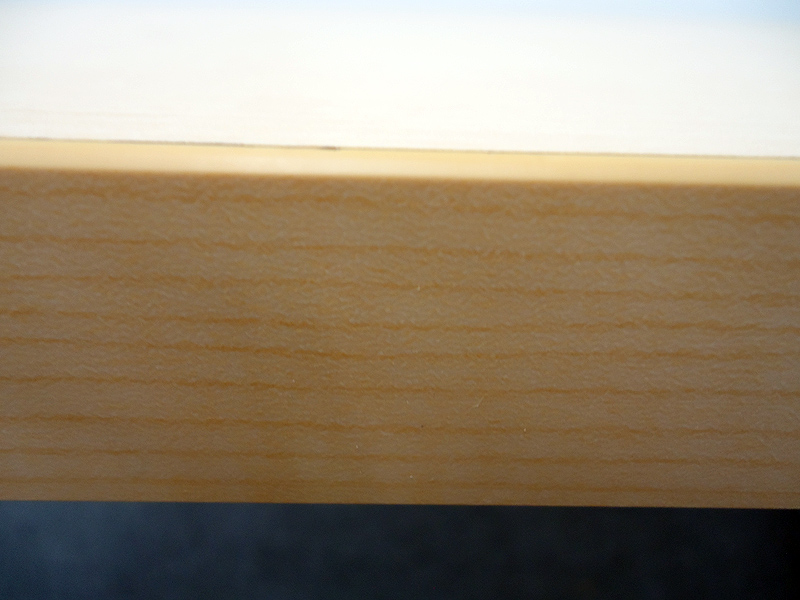- あり黄ばみ・変色が広い範囲にうっすらある、または濃い黄ばみ・変色が一部ある。(例、天板、幕板、棚板、サイド部分、脚部等にある。)