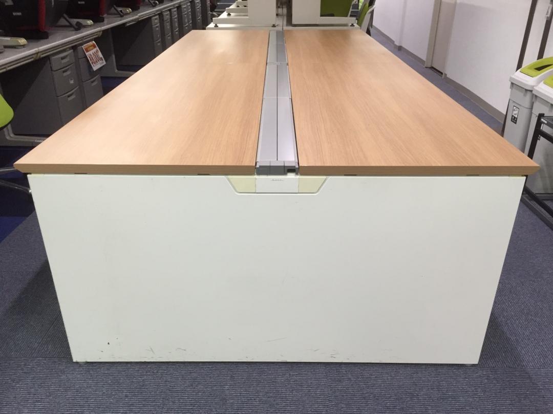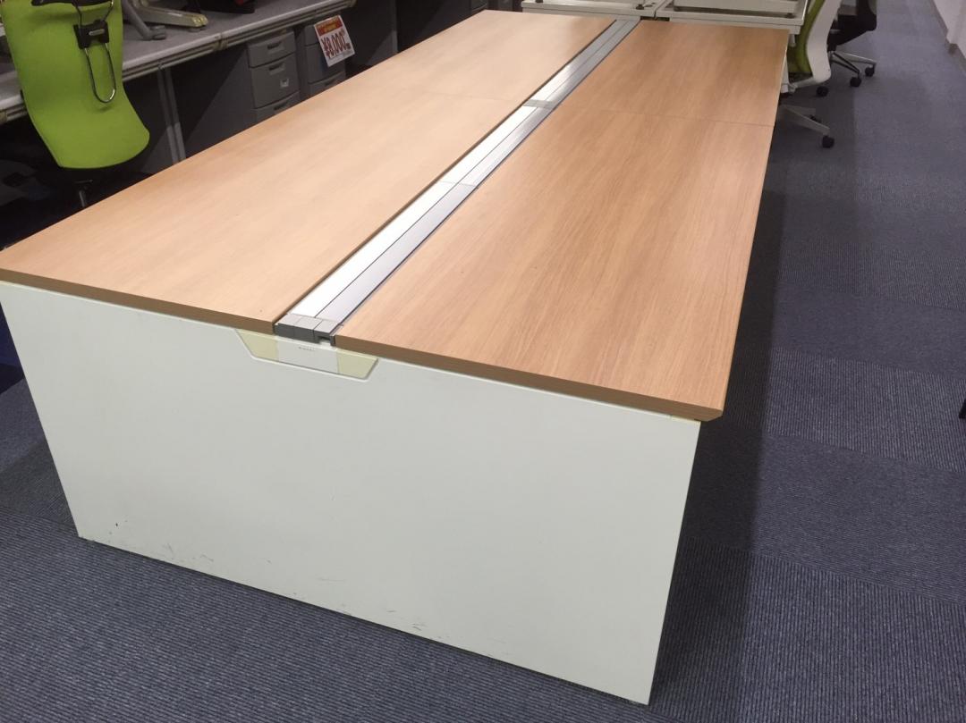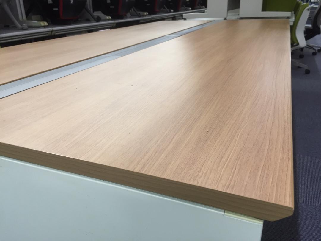 フリーアドレスデスク 幅3000mm 4~6名様用での使用に最適サイズ ~落ち着いた木目調天板でオフィスも柔らかな印象に~【RP】- 品川・三田店