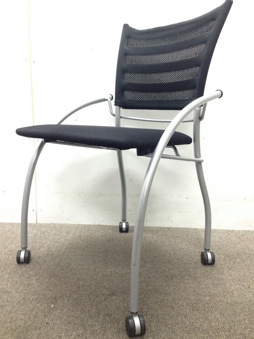 【KS】会議用チェアに非常に便利なキャスター付きミーティングチェア 4脚セット- 茨城南店