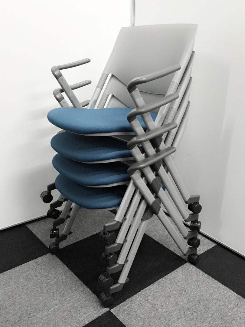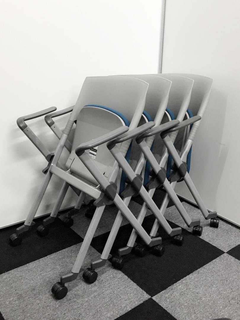 今回の会議用チェアは、横にも上にも重ねることが出来るので収納に困ることが少ないスグレモノ!